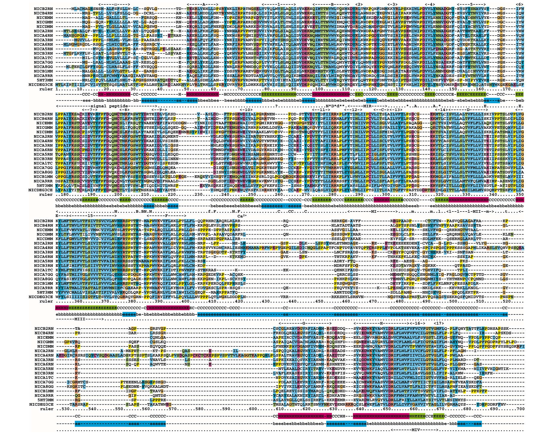 alignement a été construit avec 38 séquences de LGIC (cationique